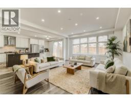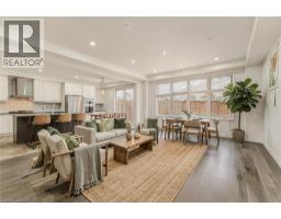 Welcome to 11 Compass Trail, a beautifully upgraded detached home offering exceptional interior finishes and a thoughtfully designed layout for modern living. The bright open-concept main floor features spacious living and dining areas, 9-foot ceilings, hardwood flooring, interior and exterior pot lights, and a convenient 2 piece bathroom. The upgraded chef’s kitchen is complemented by a walk-in pantry, ideal for everyday living and entertaining. Elegant wood stairs with iron railings lead to the second level, where you’ll find four generously sized bedrooms and two well-appointed bathrooms with cultured marble counters. The primary bedroom retreat boasts a luxurious ensuite and multiple walk-in closets. Situated on a premium 36 x 108 ft lot, this home features a fully fenced backyard, double car garage, and parking for four vehicles. Enjoy a rare setting fronting onto protected green space with a flowing river stream, scenic views, nearby pond, nature trails, and parks, all while being ideally located in a prime Cambridge neighborhood close to major amenities and highways. A perfect blend of luxury, nature, and convenience. The home is freshly painted and ready to move in, book your showing today! (id:48169)