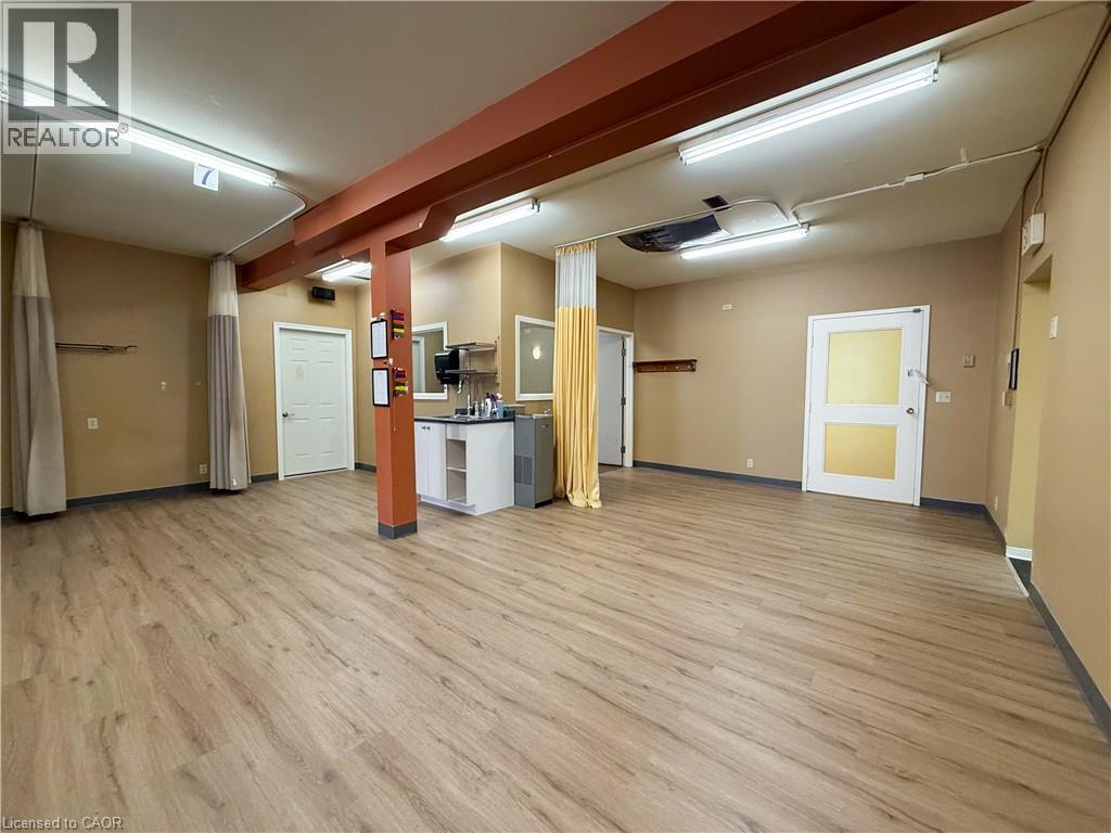 This commercial property presents an excellent opportunity. Situated in a highly visible, busy corridor at the core of Simcoe’s business district, it benefits from high foot and vehicle traffic, nearby amenities, and parking. The current layout is designed for a physiotherapy and rehabilitation clinic, with approximately 4,100 square feet on the main floor that includes office space, a welcoming reception/visitor area, private treatment rooms, and open treatment zones. An additional 1,300 square feet of second-floor unfinished storage offers substantial potential for expansion, storage, or additional uses. The second floor also hosts a residential apartment totalling roughly 1,775 square feet of living space, presently rented. This property blends commercial-use with residential income in a premier location, supporting diverse strategies for growth and cash flow. (id:48169)