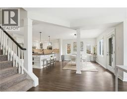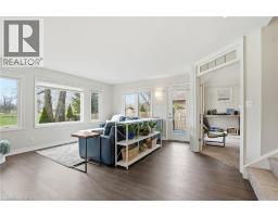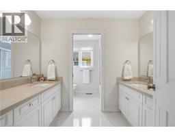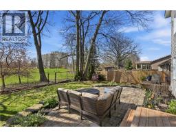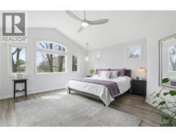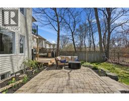 Tucked away on a quiet street in the highly sought-after north end of St. Catharines, this distinctive, custom-built home offers a rare blend of architectural character, generous space, and a private, nature-filled setting with no rear neighbours. Thoughtfully designed, the main level features expansive principal rooms with soaring ceilings, large windows, and an abundance of natural light throughout. The formal living room is anchored by a gas fireplace, while the spacious dining area provides the perfect setting for hosting. The kitchen is both functional and inviting, complete with a large island, ample cabinetry, and seamless sightlines to the family room and backyard. A private main floor office or den offers the ideal work-from-home setup, tucked away from the main living areas. Upstairs, three generously sized bedrooms are complemented by a convenient second-floor laundry room. The primary suite is a bright retreat with a walk-in closet and updated ensuite, along with access to a charming balcony overlooking the gardens. The fully finished lower level adds exceptional versatility, featuring a large family or recreation space, a fourth bedroom with its own ensuite, and ample storage. Surrounded by mature landscaping and lush greenery, the outdoor space offers privacy and tranquility, ideal for relaxing or entertaining. Recent updates include windows (2023), flooring, bathrooms, and exterior improvements, ensuring a move-in ready experience. Ideally located close to parks, schools, shopping, and quick QEW access, this home offers the perfect balance of lifestyle, convenience, and timeless design. (id:48169)