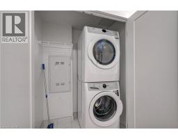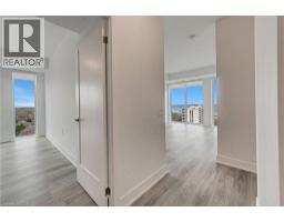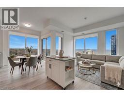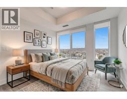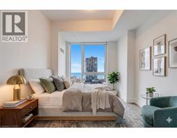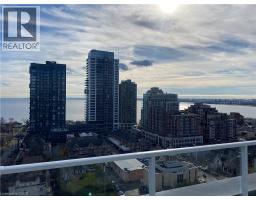 Welcome to one of the largest suites in the newly built Martha James building, an exceptional 949 sq ft corner unit. This upgraded 2-bedroom + den, 2-bath residence is filled with natural light & enjoys panoramic views of Lake Ontario along with warm morning sun exposure. Thoughtfully designed, the open-concept layout features 9 ft ceilings, floor-to-ceiling windows, sleek vinyl flooring, motorized roller shades, mirrored closet doors & Rogers WiFi included. The modern kitchen is equipped with full-size stainless steel appliances, a built-in microwave, quartz countertops with a full quartz backsplash and upgraded finishes throughout-perfect for both everyday living & entertaining. The kitchen area was designed to allow space for a table & the S/E exposure in this area leads to a sliding glass door W/O to the private balcony. The primary bedroom offers great views & boasts an impressive 3-pce ensuite bathroom as well as double closet area with mirrored doors. The 2nd bedroom is generous in size & offers direct access to the main 4-pce bathroom. The main living area is ideal for entertaining & it is designed to take full advantage of the panoramic views with the floor to ceiling windows. The versatile den offers ideal space for a home office or additional living area. Please note the ensuite laundry area. Enjoy the added value of a premium parking spot & an oversized locker (117 SQ FT with electrical outlet, P4-A)-a rare & highly desirable feature. Ideally located just moments from shopping, dining, waterfront trails, parks, Go & Via transit, QEW, 407 and 403 highways, this stunning corner suite delivers upscale living in Downtown Burlington. Residents enjoy 24/7 concierge service, an elegant lobby lounge, smart parcel system. Triple AAA tenant. Min 1 year prefer long term lease. NON smoker. NO pets. Provide Credit check with OREA rental appl. Internet is included. 2 bed, 2 bath + 1 den suite. Tenant to pay all utilities incl, water, hydro & tenants insurance. (id:48169)