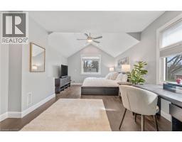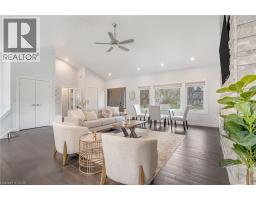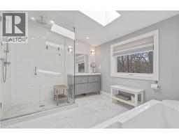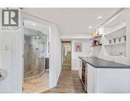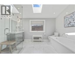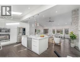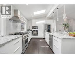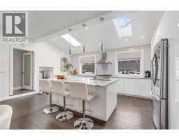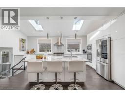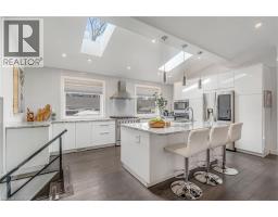 There's a reason people fight to get onto Deyncourt Drive - and this bungaloft is exactly why. Extensively renovated in 2018 on a stunning 65 x 140 ft lot in Burlington's coveted Downtown Central neighbourhood, this is the kind of home where the layout just makes sense, the finishes feel right, and the backyard makes you forget the rest of the world exists. Step inside and the vaulted ceiling opens things up immediately. A floor-to-ceiling stone feature wall with gas fireplace anchors the living and dining space, hardwood floors run throughout, and the kitchen delivers everything a family or entertainer could want: stainless built-in appliances, chef's gas range, massive island, and endless counter space - all bathed in natural light from skylights above. The floorplan is genuinely thoughtful - two bedrooms and a 3-piece bath tucked quietly along their own private wing on the main level, while a half-flight up, the primary suite feels like a world apart. Walk-through closet, freestanding tub, glass shower, skylit and serene, overlooking the backyard. Main floor laundry, two sets of sliding doors on opposite sides of the home - every detail considered. The backyard is the closer. Saltwater pool just steps from an infrared sauna, full bath, and a 419 sq ft heated pool house - permitted and winterized with a year-round living room and workshop. Whether it becomes a she-shed, man cave, or studio, it's a space people don't expect to find. A fully finished basement adds over 1,275 sq ft more for whatever life calls for. Steps to the vibrant core - downtown Burlington, the waterfront, top-rated schools, and Burlington GO. Homes like this on streets like this don't come around often. (id:48169)