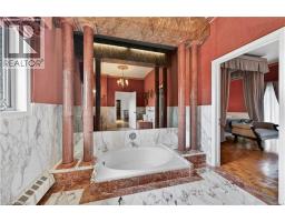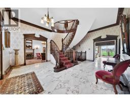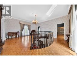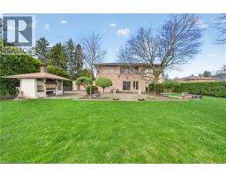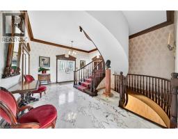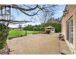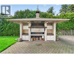 Unique Opportunity: Spectacular Private Residence; Multi-home/Unit Development Potential; or Both! Gated estate on a rare 1-acre lot in one of Hamilton’s most desirable and rapidly developing areas. This European-inspired villa features angel stone exterior with marble pillars, 11 ft ceilings on the main and 10 ft on the second lvl, grand foyer, solid oak spiral staircase, elegant oak mouldings thru-out. Main lvl offers a sunken living rm with wood-burning fireplace, large professionally designed formal dining rm, kitchen with granite countertops, and family rm with coffered ceilings and patio drs to the rear yard. The second lvl hosts a den and three bedrms, including a spacious primary with walk-in closet and regal ensuite. The additional bedrms share a jack-and-jill 3pc bath. The finished lower lvl features a rec rm, wet bar, 3pc bath, office, laundry, authentic wine cellar, plus a separate walk-up to the garage creating in-law suite potential. Private, park-like setting with manicured grounds, interlocking brick driveway and patio, and custom built-in BBQ/outdoor kitchen. Includes double attached garage and storage garage. Exceptional opportunity for builders, investors, and developers, surrounded by ongoing development. Steps to William Connell Park and minutes to shopping, amenities, and the Linc. Potential to sever the rear of the property while maintaining the existing dwelling or redevelop the entire site. A rare offering with immediate appeal and future upside! (id:48169)