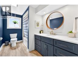 Welcome to 22 Vance! This stunning four-level backsplit offers over 2600 sq ft of meticulously maintained interior space, with a bright, open layout that flows seamlessly throughout. A charming covered front porch welcomes you into a spacious foyer. The sun-filled living room features a beautiful picture window and overlooks the formal dining area, perfect for entertaining. The kitchen has been beautifully updated with crisp white cabinetry, a subway tile backsplash, top-of-the-line stainless steel appliances (including an induction stove and inverter fridge), and a convenient movable centre island. Upstairs, you'll find three generously sized bedrooms, including a primary retreat with double closets and custom organizers. The recently updated 4-piece bathroom offers ensuite privileges.The lower level provides exceptional additional living space, featuring a large family room with a cozy gas fireplace, two dedicated office areas, a wet bar, and an updated 3-piece bathroom. Walk out to your private patio and dream backyard, complete with mature landscaping, a hot tub, and plenty of space for relaxing or entertaining.The new and fully finished basement adds even more versatility, offering a spacious rec room, laundry area, garage access (with in-law potential), and ample storage. Ideally situated on a quiet court in most desirable East Waterdown, just minutes to Burlington, parks, trails, schools, highways, and all amenities, with convenient access to the GO. Additional updates include windows, roof, furnace, A/C, and front and garage doors. Detailed listed available. Move-in ready... Just unpack and enjoy your new home! (id:48169)