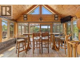Welcome to your dream getaway! This custom-built log home on Vowel Lake offers over 2200sq.f of Living Spece and features 188 feet of easy-access shoreline with breathtakingviews of serene Crown Land. Located on a maintained municipal road foryear-round accessibility, it ensures easy winter visits.Inside, enjoy a spacious great room with vaulted ceilings and a cozydouble-sided fireplace, complemented by warm wide plank pine floors.The main floor boasts a luxurious principal bedroom with a 4-pieceensuite, while kids will adore the charming loft bedroom.Relax in the beautiful 4-season sunroom offering panoramic lake viewsor step out to the sun-soaked, south-facing decks. The fully finishedwalkout lower level enhances your experience with a private suite,family room, and den, ideal for guests.Catch unforgettable western sunsets from the expansive decks or unwindin the lakeside bunkie and sauna. The property also features areliable water source from a well, equipped with a water treatmentsystem, a Generac inline backup power system for peace of mind, andfast-speed Starlink Internet to keep you connected. With smart Wi-Fithermostats, ample parking for recreational toys, and beautifullylandscaped grounds, this property is a true lakeside haven.Just 20 minutes from Parry Sound and easily accessible from the GTA,this one-of-a-kind Northern log lake house on Vowel Lake is the idealescape you've been dreaming of! 2.5% + Hst will be reduced to 1% if Listing Agent or team member shows property to Buyer, Relative or Affiliated company. No WETT cert for wood burning sauna, WETT cert on line for the Fireplace in living room. (id:48169)