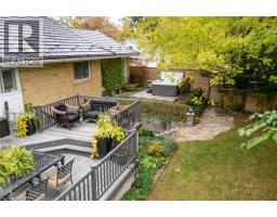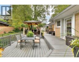 On a secluded .40-acre lot, this stylish bungalow captures modern living without compromising its mid-century charm. Professionally landscaped the property feels like a private country retreat in the heart of the city. The outdoor space is designed for entertaining, with newer fencing, a three-tier deck, and two expansive granite patios. From the landscape lighting to the gas line for the BBQ, every detail has been carefully considered. The grand foyer showcases a coffered ceiling and provides easy access to both the garage and the yard. Quality is evident throughout the bright home, with gas fireplaces, smart-lighting, stone and hardwood flooring, crown moldings, and California shutters. The upgraded kitchen boasts tumbled marble, classic white cabinetry, stainless steel appliances, and a built-in bar-height peninsula. The dining area features a dry bar with matching stone countertops and built-ins. The primary suite is complete with a gas fireplace, a walkout to the 12 x 12 composite deck, dual closets, and a spa-inspired ensuite. This 5 piece bathroom hosts the fully customized walk-in closet, a large glass shower, a standalone soaker tub, and an exposed angel stone wall. A second bedroom and a guest powder room complete the upper level. The walkout basement offers over 900 square feet of beautifully finished living space, including large windows, a gas fireplace, a full bathroom, and a contemporary kitchenette, ideal for extended family. The basement has includes a granite patio with new stone retaining walls offering privacy for your extended guests. The home is protected by a security system and a newer steel roof with a 50-year warranty. The heated and insulated oversized double garage with workshop space is a dream for hobbyists. This property lets you live as if you’ve already escaped the city, without ever leaving the comfort of your own home. (id:48169)