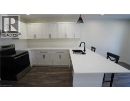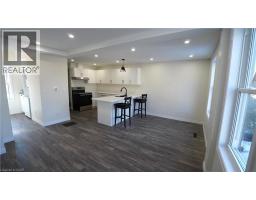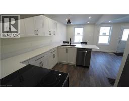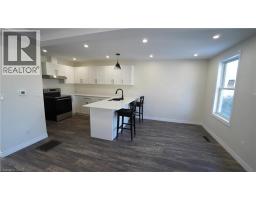 This meticulously newly renovated semi-detached residence is ideally situated in the vibrant downtown neighborhood of Corktown, with parks and trails directly across the street. Enjoy a prime location with convenient access to the GO station, recreational trails, parks, healthcare facilities, retail outlets, and some of Hamilton's premier dining establishments. Upon entry, you are greeted by a spacious open-concept design that seamlessly integrates living and dining areas. The refined kitchen boasts a peninsula-style island with a breakfast bar, stone countertops, and a dishwasher, with plenty of cupboard and counter space all complemented by abundant natural light from large windows that enhance the expansive living area. The first level also features a well-appointed four-piece bathroom with a tub and shower, and offers direct access to a private backyard—an ideal setting for outdoor living and entertaining during the warmer months. Additional amenities include a dedicated laundry area with an in-suite washer and dryer, complemented by ample storage space. A staircase with wood and wrought iron spindles leads to a versatile loft bedroom that can easily accommodate a home office or workspace. The residence is finished with luxury laminate flooring and contemporary fixtures throughout, and includes parking for two vehicles. This home represents a sophisticated urban living experience and is a residence you will be proud to call your own. (id:48169)