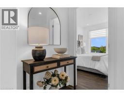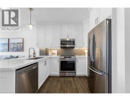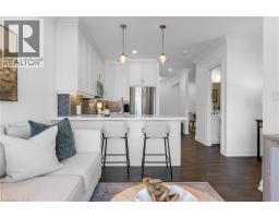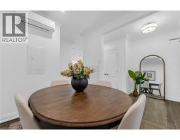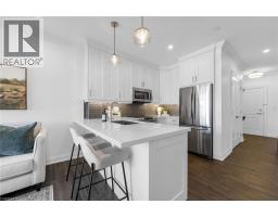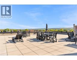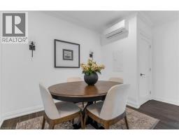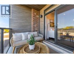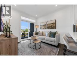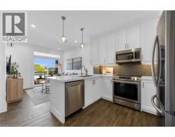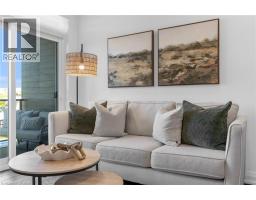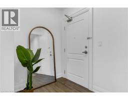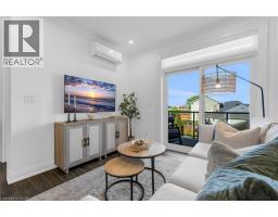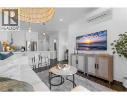 Step into luxury living with this stunning 1bdrm + den boutique-style condo, perfectly situated in the heart of Stoney Creek. Enjoy near-direct Hwy access to the QEW and just a short drive to the upcoming GO Station! Better than new, this elegantly appointed suite features a spacious open-concept layout with a designer kitchen showcasing custom cabinetry, soft-close cupboards, under-cabinet accent lighting, elegant quartz countertops, quality stainless steel appliances, and rich-toned flooring throughout. The kitchen peninsula flows seamlessly into the inviting living room, which opens to an oversized balcony - ideal for enjoying a BBQ, morning coffee, or evening breeze. Large windows fill the space with natural light, enhancing the modern finishes and warm, sophisticated tones throughout. The generous primary bedroom features a walk-in closet, while the luxuriously appointed 3-piece bath offers both comfort and style. As an added bonus, the versatile den offers flexible space - perfect for a home office, guest room, or dining area - while in-suite laundry adds everyday convenience to this stunning condo. Enjoy year round comfort with in-floor radiant heating and ductless split systems, offering efficient and customizable temperature control to suit your needs. Take advantage of exceptional building amenities, including a rooftop terrace with panoramic views of the Escarpment and Lake Ontario, a well equipped fitness room (no gym membership needed!), a stylish party room for hosting larger gatherings and a spacious locker for additional storage! Offering a rare blend of elegance, functionality, and lifestyle convenience, this condo is truly a rare gem in a prime location - close to all major amenities including NEW Centennial GO Station, shopping (& Costco), parks, trails, schools, rec centre & more! Don’t miss your chance to call it home! *Utilities included excluding Hydro. No smoking building (includes balcony and unit) - as per condo rules* (id:48169)