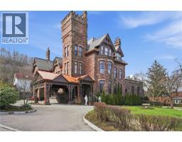 A landmark of extraordinary distinction, Ravenscliffe Castle stands as one of Hamilton’s most iconic and historically significant residences. Built in 1881 by renowned architect James Balfour, this Romanesque Gothic masterpiece is crafted from imported Scottish stone and defined by dramatic rooflines, a commanding five storey tower, and a striking turret that rises above the surrounding treetops. Spanning approximately 12,000 square feet, the residence unfolds across grand principal rooms with soaring ceilings and remarkable architectural detail throughout. Original carved woodwork, intricate plaster mouldings, ceiling medallions, and rich paneling have been preserved, reflecting a level of craftsmanship rarely found today. The home offers an impressive layout with multiple bedrooms, bathrooms, and fireplaces, along with formal living and dining spaces designed for both intimate gatherings and large-scale entertaining. A grand staircase, secondary service staircase, and original staff quarters speak to the home’s storied past, while the upper levels and tower offer sweeping views over the city. Set within the prestigious Durand neighbourhood, at the base of the escarpment, the property is surrounded by mature trees and established streetscapes, just moments from downtown amenities, hospitals, transit, and vibrant dining and cultural destinations. Ravenscliffe Castle is more than a residence, it is a rare opportunity to own a true piece of Canadian architectural history, offering scale, presence, and legacy for a discerning buyer ready to restore and reimagine its next chapter. (id:48169)