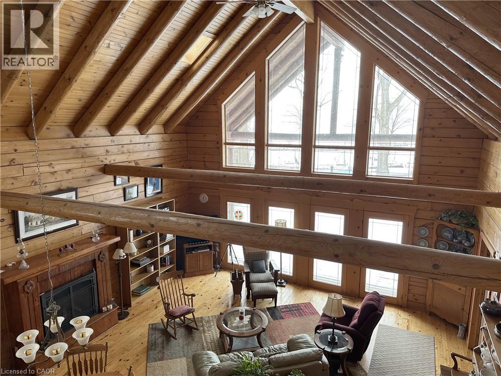 BEST KEPT SECRET IN TOWN! Nestled on a quiet dead-end street in one of Port Dover’s most coveted waterfront locations, this exceptional property blends modern log-home luxury with historic charm—offering what many consider the best view in town. Held in the same family for 125 years, it reflects rare heritage and craftsmanship. A thoughtfully designed 3000+ sq. ft. log home addition, built 19 years ago, complements the original cottage with warmth, character, and modern comfort. A stunning two-storey great room anchors the home, featuring wood accents, a gas fireplace, and a dramatic wall of south-facing windows that flood the space with natural light and open to a covered outdoor living area. Here, sweeping views of Lake Erie, the harbour, pier, and iconic lighthouse provide a breathtaking backdrop—perfect for morning coffee, sunset dining, or watching the fishing tugs come and go. The second-storey loft offers flexible space for guests, a home office, or a reading retreat. A main-floor primary bedroom and laundry add everyday convenience, while the unfinished basement—with 9 ft. ceilings—offers excellent potential for future expansion. Step back in time in the attached circa-1900 cottage, rich in character and history, featuring three bedrooms, a living room with fireplace, and a wrap-around sunroom overlooking the marina. Walk easily downtown to shops, restaurants, and live theatre. A log home offers a lifestyle that goes far beyond traditional real estate, appealing to buyers seeking warmth, character, and a true sense of retreat. This quality log home delivers timeless warmth, versatile living spaces, and postcard-perfect views in a truly premier Port Dover waterfront setting. (id:48169)