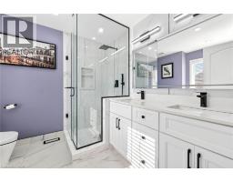 Walk to Lake Ontario. Just minutes to Winona Crossing shopping and highway access. Perfect for commuters. Great family area with neighbourhood park. This lovely updated home with bright entryway lots of pot lighting. Updated kitchen with quartz countertops and loads of extra cupboard space. Built in microwave and dishwasher and stainless steel appliances. No carpeting here. Sliding doors from living room lead to private fenced yard with deck perfect for summer barbecues. Primary bedroom has beautiful ensuite with stand alone tub, double sinks. Entire wall of built in dressers and drawers as well as large walk in closet. Updated 5 piece ensuite with double sinks, large separate shower and stand alone tub. Work at home with convenient office on upper level. Large recreation room with built ins. Extra bedroom on lower level. Ready to move in. (id:48169)