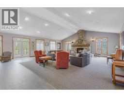 $848.59 MonthlyExperience the perfect blend of nature and modern luxury at the Riverwalk Condominiums. This stunning two-bedroom raised bungalow offers a rare lifestyle opportunity along the banks of the Grand River. The heart of the home is a chef-inspired kitchen, fully updated in 2024/2025 with rich walnut cabinetry, porcelain walls, and a striking mix of stainless steel and leathered granite countertops. Morning coffee is best enjoyed at the live-edge breakfast bar or through the sunny patio doors onto your private retreat. The open-concept living area, anchored by an electric fireplace and crown moulding, is bathed in natural light from a classic bay window. Retreat to the primary suite featuring a magnificent walk-in closet, or utilize the second bedroom, a showstopper with vaulted ceilings and a Palladian window, as a fabulous home office with its own private balcony. The lower level expands your footprint significantly, offering a massive media room, a flexible bonus room for guests or fitness, and a bright, sun-filled laundry suite with direct garage access. For larger family gatherings, residents can use the Quarry House with cozy fireplace setting, full kitchen & bathroom areas. In nicer weather there is an outdoor deck & newly installed pickleball court! Come be a part of this lovely riverside community! (id:48169)
