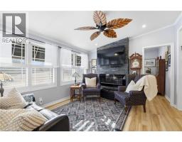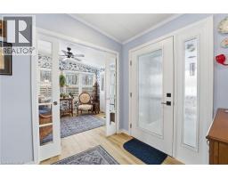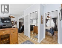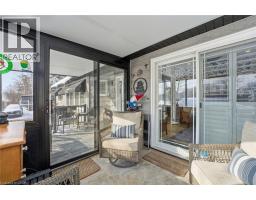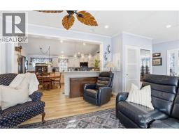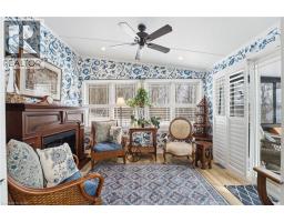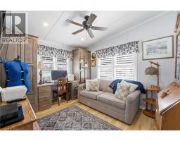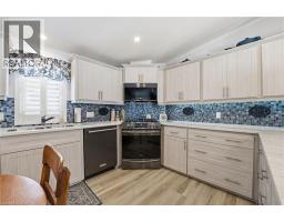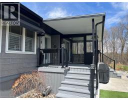 Definitely one of THE BEST locations in Lost Forest Park, set on a prime corner lot and backing onto forested conservation. This General Coach custom model boasts an open layout with thoughtful upgrades throughout. The spacious eat-in kitchen features neutral cabinetry, pull-out drawers, a pantry, black stainless steel appliances, Corian countertops, pendant lights, and under-cabinet lighting. The large living room showcases a stunning floor-to-ceiling stone Napoleon electric fireplace. The primary bedroom includes a walk-in closet and a 4-piece ensuite, while the home also offers a second bedroom, an additional 3-piece bath, and a roomy laundry area with full-size washer and dryer. Pocket French door entry to the bright den/sunroom with large windows to unwind and enjoy the forest view. The sunroom also offers access to the professionally enclosed porch for 3-season enjoyment. California shutters, vaulted ceilings, pot lights, and ceiling fans add charm throughout. A Generac generator ensures peace of mind, and the professionally landscaped lot shines with a flagstone patio, low-maintenance artificial grass, mature trees, beautiful gardens, storage shed and a custom built raised garden bed. Enjoy entertaining in your private backyard and the tranquility of nature. Parking for two cars on the oversized double driveway! Lost Forest Park is a gated 100-acre community with amenities like a pool and walking trails, and a monthly fee of approximately $782 covers the land lease, maintenance, and more. Conveniently located in north Burlington and a short distance to Waterdown’s shops and restaurants, this rare find is truly one-of-a-kind. (id:48169)