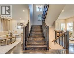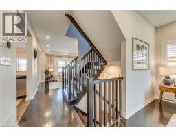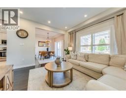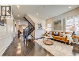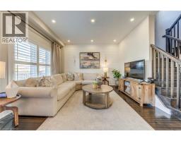 Welcome to this beautifully upgraded semi-detached home in Burlington's highly sought-after Alton Village-offering a perfect blend of modern style, functional layout, and move-in-ready comfort.Step inside to a bright and inviting main floor featuring 9-ft ceilings, rich hardwood flooring, and bright pot lighting. The open-concept living and dining area flows seamlessly into a spacious family room, creating an ideal setting for both everyday living and entertaining. The renovated kitchen (2020) is a standout, showcasing white cabinetry, granite countertops, modern backsplash, and expanded prep space, with a cozy breakfast area overlooking the backyard. Upstairs, you will find three generously sized bedrooms, including a spacious primary retreat complete with a walk-in closet with custom built-in cabinetry and private ensuite. Two additional bedrooms share a well-appointed main bath, while the convenient second-floor laundry room adds everyday practicality.The fully finished basement (freshly painted in 2026) offers excellent additional living space, including a large rec room, dedicated office (or potential 4th bedroom), and ample storage-perfect for growing families or those working from home.Exterior features include interlock landscaping in the front and backyard, a large low-maintenance yard, and a freshly stained deck (2025), ideal for outdoor entertaining.Additional upgrades include: solid oak staircase, upgraded bathroom vanities with granite counters, pot lights (2019), main floor repaint (2024), smart Ecobee thermostat, and updated fixtures throughout.Located close to top-rated schools, parks, shopping, and all amenities, this home offers exceptional value in one of Burlington's most desirable family-friendly communities. (id:48169)