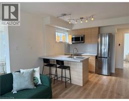 Available immediately! Bright & energized suite in the heart of Kitchener, this beautifully renovated 2-bedroom + sunroom, 1-bathroom ground-floor apartment is located in a charming century triplex in Kitchener’s Heritage Olde Berlin neighborhood and includes one parking spot. Bright and energy-efficient, the unit features insulated exterior walls, new windows with rolling blinds, wood-look vinyl flooring, and an open-concept kitchen with stone countertops, island, and stainless-steel appliances, including fridge, ceramic-top stove, microwave with range hood, and dishwasher. The modern bathroom includes a sleek glass shower, and in-suite front-load washer and dryer are provided. Tenants also enjoy exclusive use of the front porch. Utilities — hydro, gas, and water — are separate meters and the tenant’s responsibility. Situated on a quiet, tree-lined street in the Civic Centre area, the apartment is steps from Civic Centre Park, Kitchener Public Library, The Registry Theatre, Centre In The Square, and Kitchener Market. Walking distance to the Innovation District, Victoria Park, McMaster School of Medicine, University of Waterloo School of Pharmacy, and the future transit hub with GO Train, VIA Rail, and ION LRT. Nearby are Google, Desire2Learn, Communitech, Manulife, as well as shops, restaurants, bars, and the farmers market, making this a prime downtown location. Note: This is one apartment within a triplex containing three separate units, not the entire house. (id:48169)