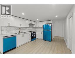 Stylish 2-bedroom basement apartment with private entrance located in the Downtown area of St. Catharines. This recently renovated unit offers a modern open-concept layout with wide-plank flooring, pot lights throughout, and a sleek kitchen featuring contemporary cabinetry, subway tile backsplash, and full-size appliances. Two bedrooms, a beautifully finished 3-piece bathroom with glass shower and designer fixtures, and in-suite laundry complete the space. Heat, water, and one parking space included; separate hydro meter. Steps to transit, schools, and downtown amenities, with quick access to shopping, dining, and major routes. Immediate occupancy available. (id:48169)