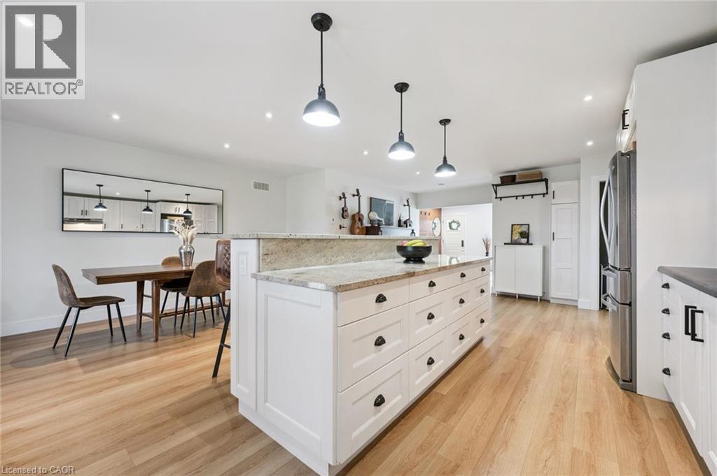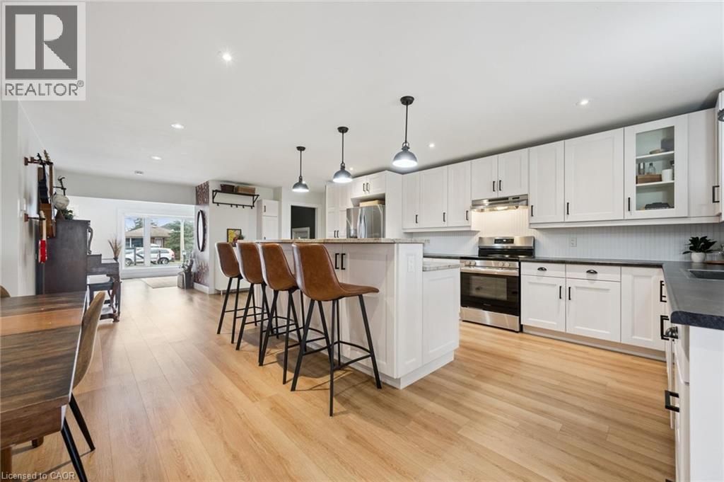 Escape the hustle and bustle without sacrificing convenience! This unique home is nestled in the quaint and quiet community of Bridgeport, offering the perfect balance of tranquility and accessibility. This stylish bungalow underwent an extensive addition in 2015, effectively doubling its square footage on both levels to over 2,800 sqft of renovated, mid-century modern–inspired living space — including 5 bedrooms, 3 full bathrooms and 3 living rooms! Perfect for growing families and hobbyists alike, 65 Schweitzer offers an abundance of privacy and recreational space that is hard to come by in the city. Curb appeal matters, and this one doesn’t disappoint with it’s completely refinished exterior & front porch (2023), updated exterior doors & garage door (2023) and brand new 4-car driveway (2025). The large, bright primary suite offers a peaceful retreat with its 3 big windows, 2 large closets, and private 3-piece bathroom. For those that love gathering with family or entertaining guests, this home’s huge kitchen & dining area is a dream! The large island with granite countertops accommodates seating for up to 5 people, with room for another 8-10 guests in the adjacent dining area. Enjoy walk-out access to your covered back deck, hot tub, and large, private backyard, plus pull-through access to the yard via the oversized garage with dual roll-up doors. Other updates include AC (2022), Washer/Dryer (2026), Stove (2025), and Dishwasher (2023) — with no major updates needed, you can move in & enjoy this gorgeous home before summer! OPEN HOUSES: Wed 6-8pm, Sat & Sun 1-4pm (id:48169)