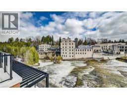 Welcome home to the prestigious, newly built Elora Mill Residences. The stunning and spacious Observatory Suite (1711 sq. ft. as per builder) features two bedrooms, 3 bathrooms and a private outdoor 387 sq. ft. terrace, as well as an open concept layout which is ideal for hosting family and friends, relaxing and everything in between. The heart of the home is a chef-inspired kitchen complete with a thoughtfully designed island, gorgeous premium finishes, built-in pantry drawer, built-in modern appliances including induction cooktop, stove, dishwasher and integrated refrigerator, as well as quartz countertops, backsplash, Watts 4 stage water filtering system and waterfall island. Tucked away is a serene, primary suite with a spa-like ensuite and generous double walk-in closet. A second bedroom offers privacy for guests or family. Solid wood, custom doors and trim, hardware and motorized blinds elevate the space throughout. Wake up to an abundance of natural light from either bedroom, with sliding glass doors extending your living space outdoors to the amazing terrace. Enjoy your morning coffee, dine alfresco, or simply take in the fresh air on the terraces, with stunning views of the Elora Mill and surroundings. Convenient in-suite, full-sized laundry room offers extra storage. Premium amenities abound in this luxurious residence, and include a concierge, beautiful and impressive lobby with lounge area and coffee bar, pool with magnificent river views, courtyard oasis with curated gardens, state of the art fitness centre, yoga studio, party room, locker and underground parking complete with an Electric Charger. Located just steps from Elora's historic and charming downtown, you'll find gourmet restaturants, quaint artisan shops and cafes to explore. Looking for unrivalled, refined living, surrounded by the natural beauty of one of Ontario's prettiest towns? You have found it! Don't miss this exceptional and exclusive opportunity - book your private showing today! (id:48169)
