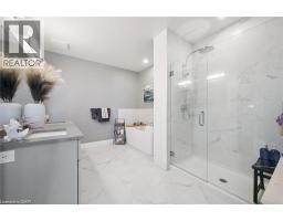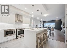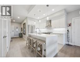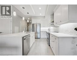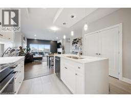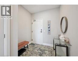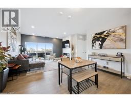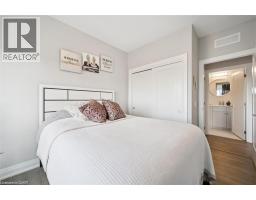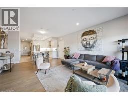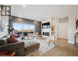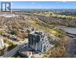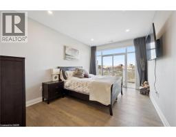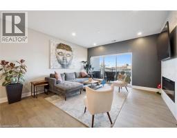 $784.39 MonthlyWelcome to Unit 608 at Edgewater Condominium, a sophisticated riverside residence in the heart of Downtown Guelph. This 2-bedroom, 2-bath suite offers approximately 1,260 sq ft of thoughtfully designed living space, complete with two private balconies and a layout that balances comfort and functionality. Engineered hardwood flooring runs throughout, complementing a modern kitchen featuring a waterfall island, stone countertops, premium appliances, and a sleek backsplash. The open-concept living and dining area is anchored by a floor-to-ceiling tiled fireplace, with walk-out access to a balcony overlooking the city. The primary bedroom includes its own private balcony, walk-in closet, and a well-appointed 5-piece ensuite with freestanding tub, glass shower, and heated floors. A second bedroom, 3-piece bath, and in-suite laundry add flexibility for guests, work-from-home, or everyday living. Large windows fill the space with natural light, while neutral finishes offer a clean, move-in-ready feel. The suite includes one underground parking space and a storage locker, along with access to building amenities such as a library, fitness centre, party and media rooms, and guest suites. Ideally situated steps to downtown shops, dining, riverfront trails, and GO/VIA Rail, this is low-maintenance living in one of Guelph’s most desirable condo communities. (id:48169)