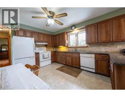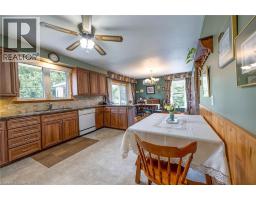 Lovely country property with a detached garage/workshop - 30' x 40' heated with propane. 220 volt, 14' ceiling height & a vehicle hoist located minutes from Elora or Elmira. The workshop has running water & a 12' x 12' overhead, insulated steel door. Scenic Middlebrook Road location. First time offered for sale by the original owner. Metal roof. Plaster construction. Hardwood flooring in the living room as well as a wood burning fireplace. Eat-in kitchen with updated cabinetry & granite counter top. Sliding door access to a covered patio & back yard. Two bedrooms on the main floor. Updated tub & surround in the main bathroom. Downstairs includes another bedroom, rec room & den with a rough-in for a woodstove, mud room w/sink & a 3 piece bathroom & laundry room. Over 2,200 square feet of finished living space. Four energy efficient, heat pump units were installed, throughout the house in 2024. These are now the primary source for heat & air conditioning. Water is supplied by a dug well. (id:48169)