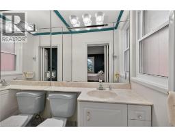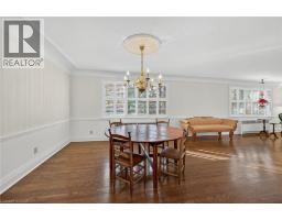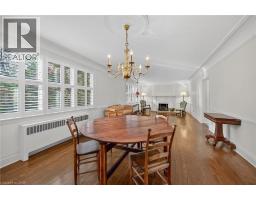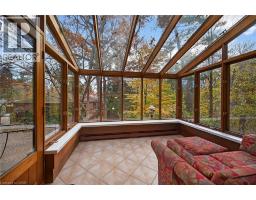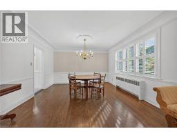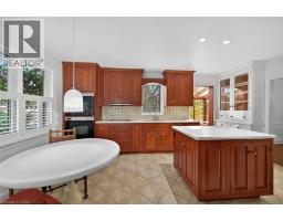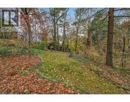 Beautifully maintained & cared for, this home sits on a double-wide lot surrounded by 32 species of trees. Same family for over 50 years. Eat-in kitchen has movable island & solid cherry custom cabinetry; opens to a heated, sunlight solarium. Combined living/dining room features hardwood floors, gas fireplace, views of private ravine. Main floor bedroom/office w/ a 2-pc ensuite w/ heated floor. Upstairs: 3 bedrooms, large central landing, built-in bookcases, 4-pc bathroom & walk-in hall closet. Basement could be a self-contained unit w/ exterior access to the yard. Currently this space has large laundry room, 3-pc washroom w/ heated floor, a den w/ fireplace, office, 2 studio spaces. 4-vehicle driveway w/ double car garage divided to include a hobbyist’s workshop. The privacy of this lot is one to admire; interlocking patio area, walking path & stairs to the lower yard & ravine. This property is one of a kind & must be seen to be truly appreciated. Steps to the lake, LaSalle Marina, Burlington Golf & Country Club, schools. Quick access to GO station & hwy. (id:48169)