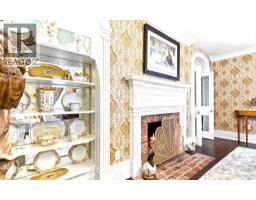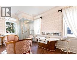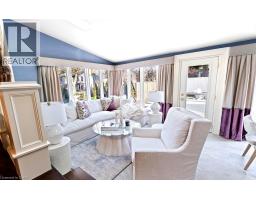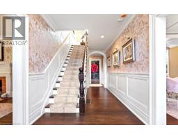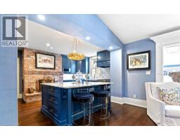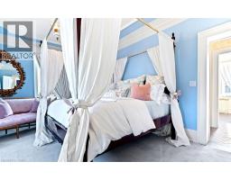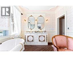 Located in one of the most desirable areas of Old Town, beautiful marriage of old-world charm and modern upgrades. Walk to iconic Queen St. with its boutiques, restaurants and theatres or take a short stroll to the waterfront. Enjoy the serenity of Queen's Royal Park or play a round of golf at Canada's oldest golf course. This home showcases stunning decor such as designer light fixtures, custom drapes, valances and luxurious wall coverings. Enter through the antique door into the elegant front entry with gleaming hardwood floors throughout. The formal dining room is sheer opulence with its antique chandelier set in a plaster ceiling medallion, decorative built-in shelving and fireplace with hand-crafted mantle. The grand living room features a beautiful archway with custom millwork set between coffered ceilings with designer brass fixtures, built-in bookcase and buffet with accent mirrored wall. Bright and airy, the kitchen is definitely the heart of the home with 5 stainless steel appliances, center island, quartz countertops, Nantucket grey cabinetry, heated floors and cozy fireplace. Spacious family room with its comfortable seating centered around a fireplace with hand-crafted mantle and soaring vaulted ceiling with contemporary bubble chandeliers. A gorgeous sunken sunroom which offers floor-to-ceiling windows and 4 skylights overlooking the jaw-dropping two-tiered yard. Main floor guest retreat with ensuite. The Grand Victorian staircase features designer runner and custom wainscotting leading to the elegant and spacious landing. Each of the 3 bedrooms have beautiful hardwood flooring, the Primary bedroom with private water closet and spa-like ensuite bath with heated herringbone tile, sumptuous soaker tub, walk-in glass rain shower. Second and third bedrooms share a bath with heated marble flooring and custom vanity. A cozy rec-room and 2nd kitchen in the lower level completes this charming home. (id:48169)